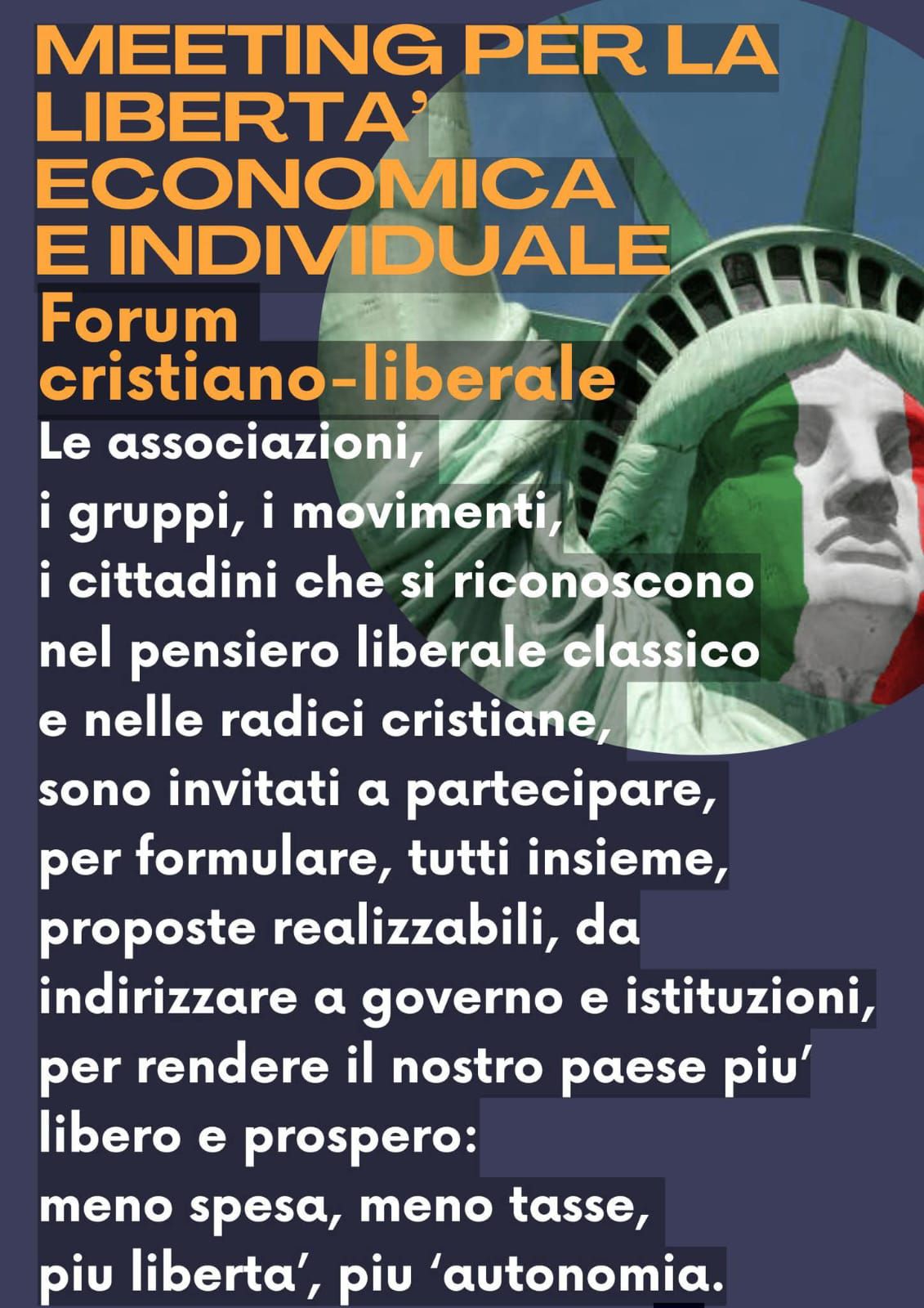 È tempo di dare vita a un grande movimento, di costruire un ponte tra le differenti correnti del liberalismo e di lavorare insieme per un obiettivo comune: la LIBERTÀ.